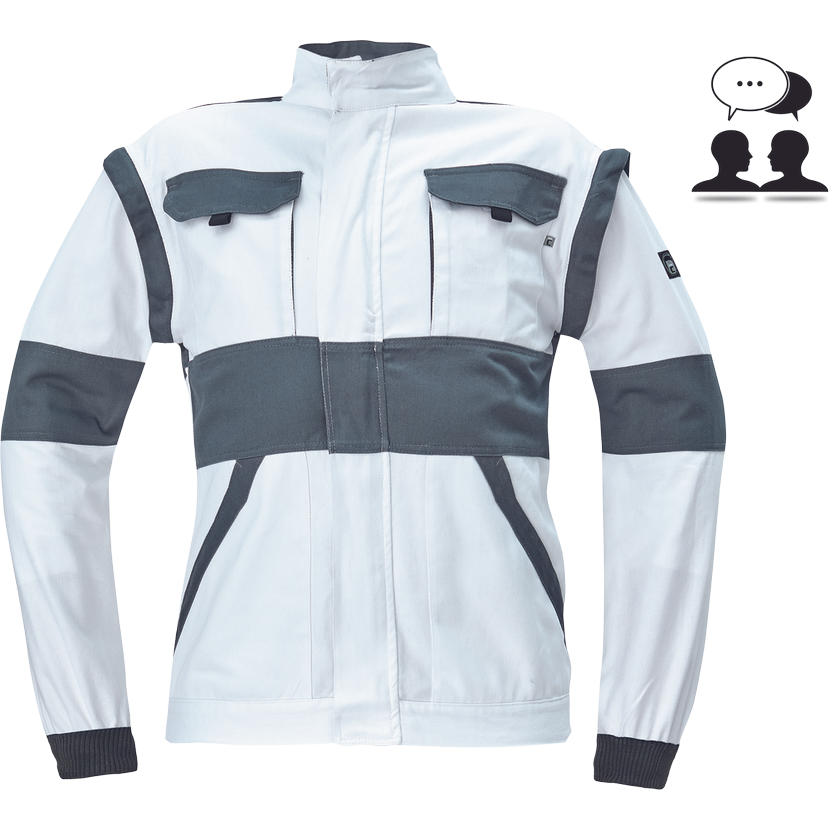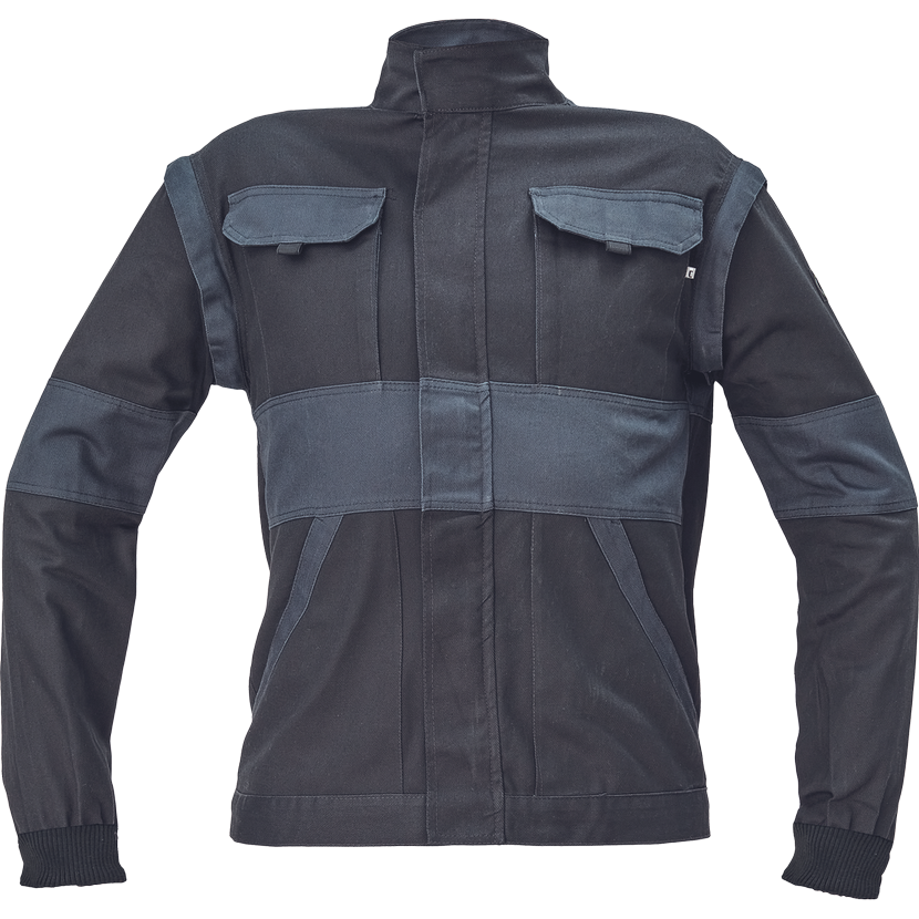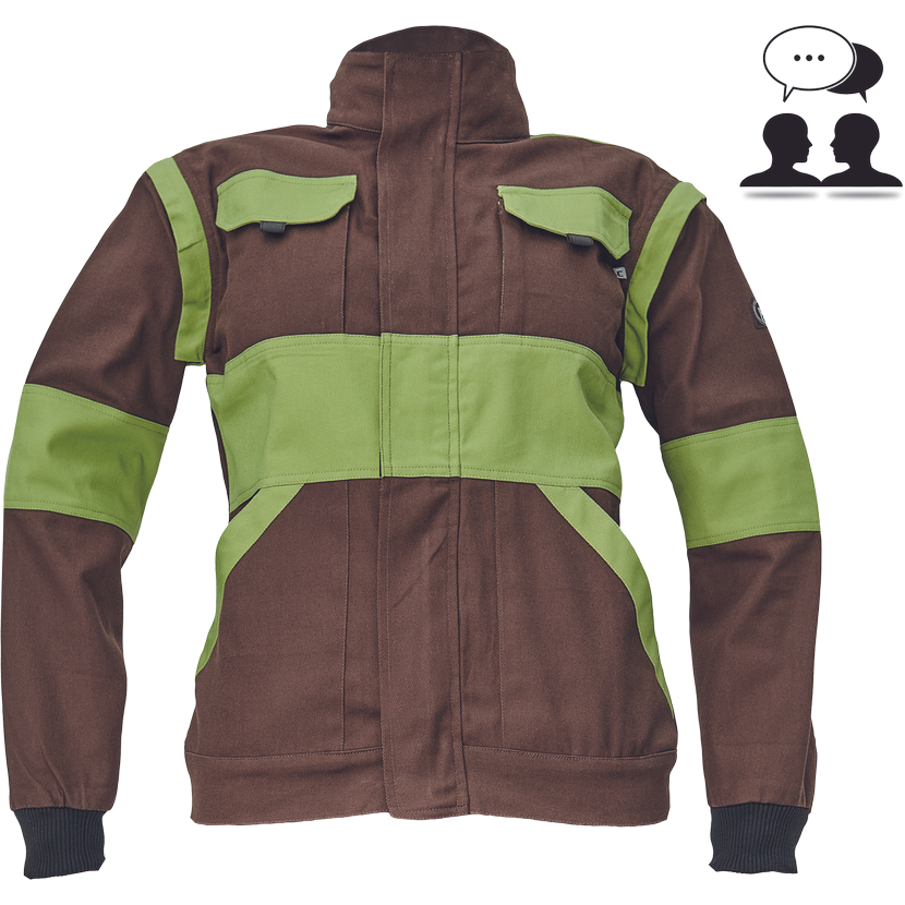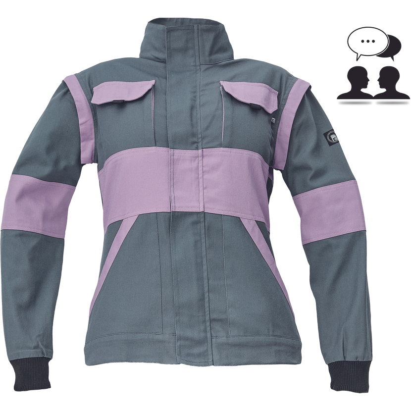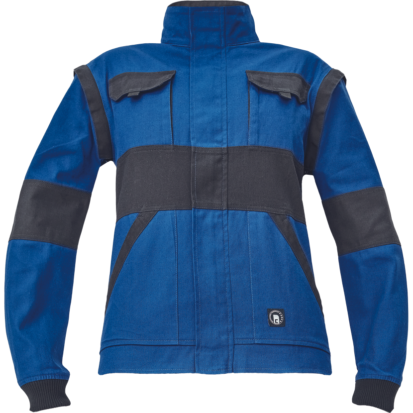 • dámská pracovní bunda se zapínáním na zip krytým légou • odepínatelné rukávy • 2 přední kapsy • 2 náprsní kapsy • zesílení namáhaných míst loktů a ramen • pružné manžety rukávů a spodní obvod v pase